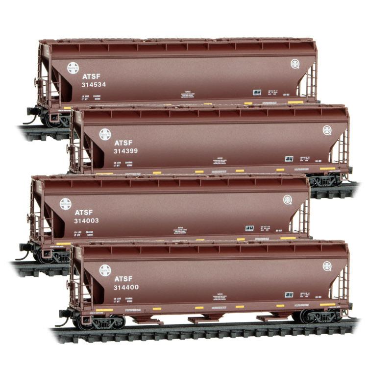 Built in the mid-1970s, this ATSF covered hopper has a capacity of 4600 cubic feet, and carries the ATSF “Q” logo. This marking indicates the ATSF “Managing Total Quality” program which existed from the 1980s until just prior to the merger. Founded in 1859, Santa Fe was one of the largest railroads in North America up until 1996, when it merged with Burlington Northern to form BNSF.