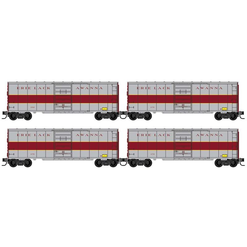 These express boxcars were used in service with Erie Lackawanna passenger trains and belonged to Class BX. The Erie Lackawanna was formed through the 1960 merger of the Erie Railroad, and the Delaware, Lackawanna & Western Railroad.
